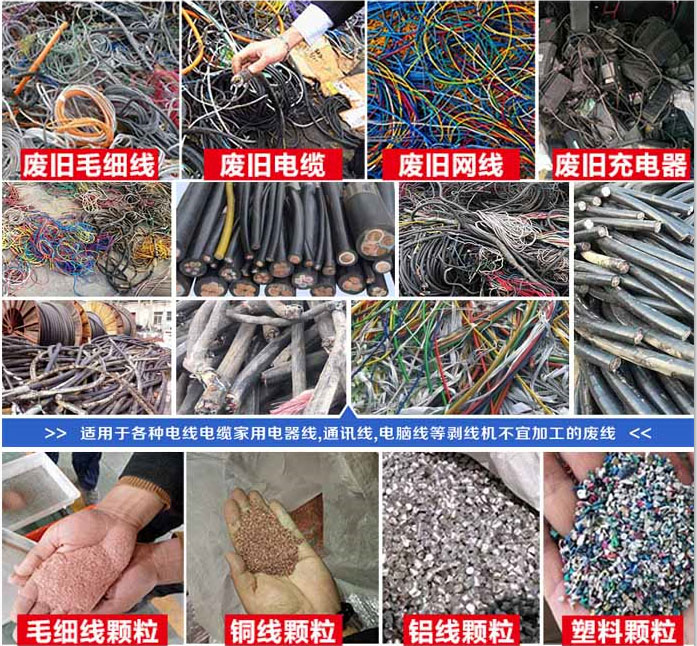各种电线电缆,家用电器线,通讯线,电脑线等剥线机不宜加工的废线。
