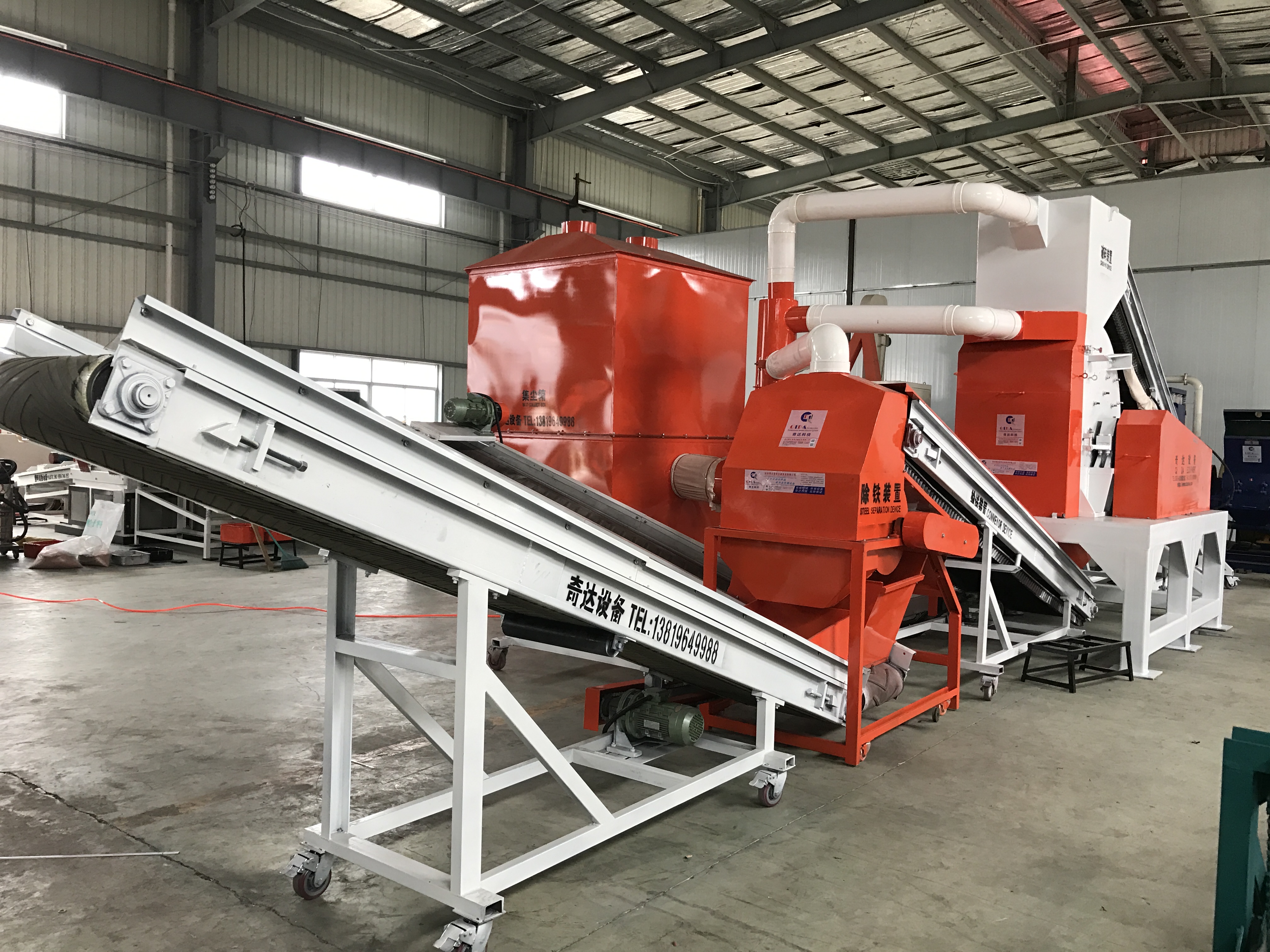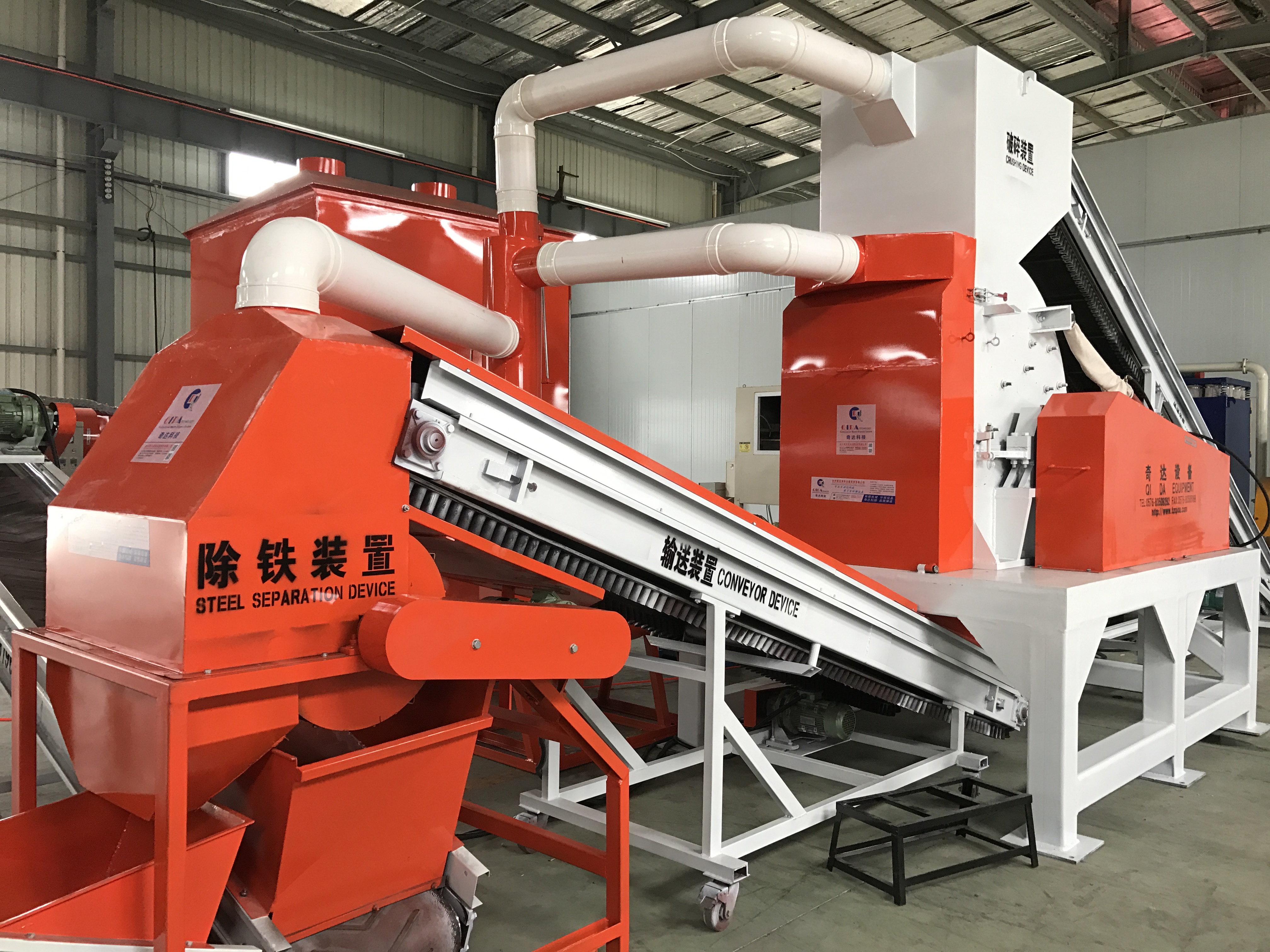 Using dry crusher, strong magnetic roller separator and air separator, the waste radiator is crushed and sorted.